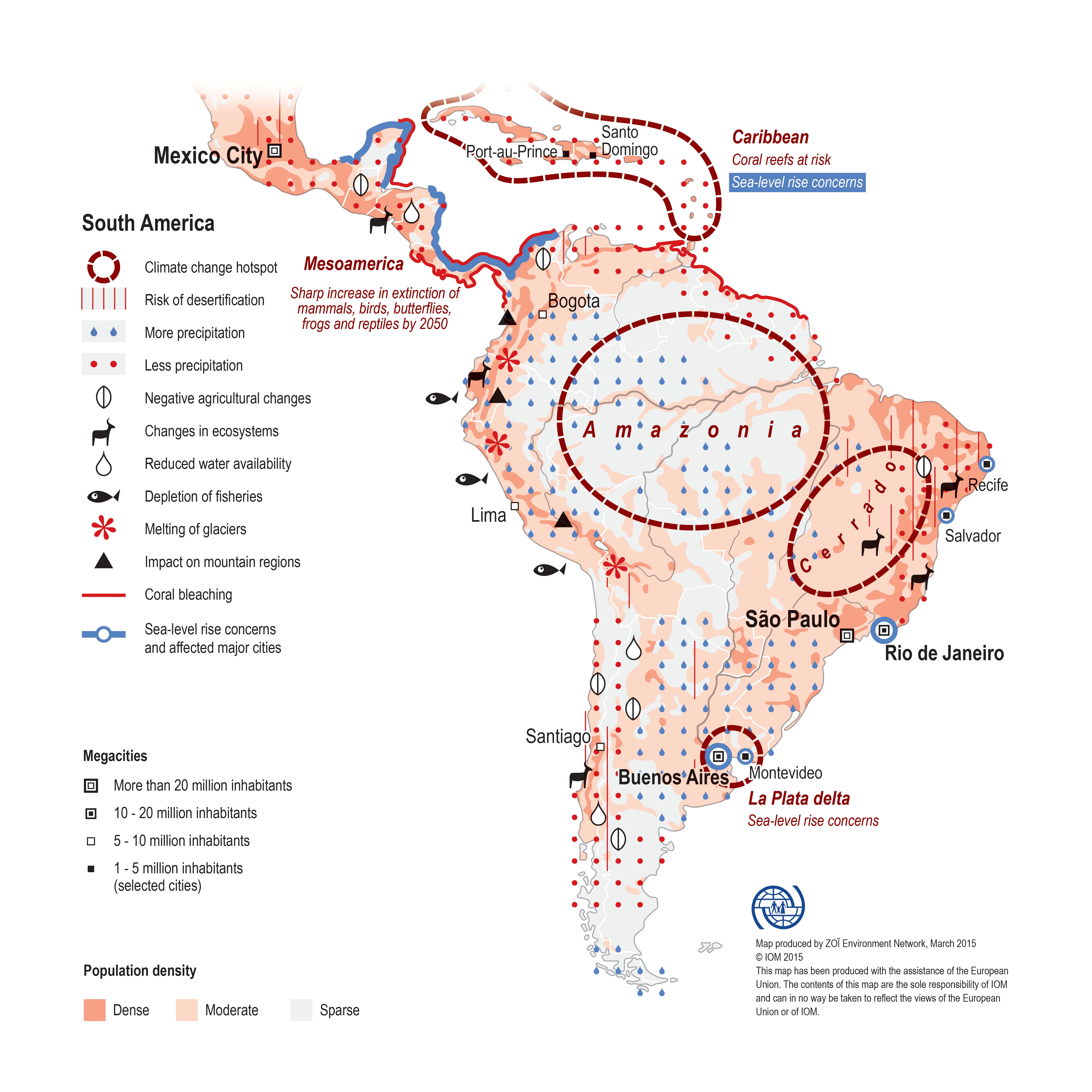 DescriptionImpacts of climate change in South America. Population density and megacities round off the topic.